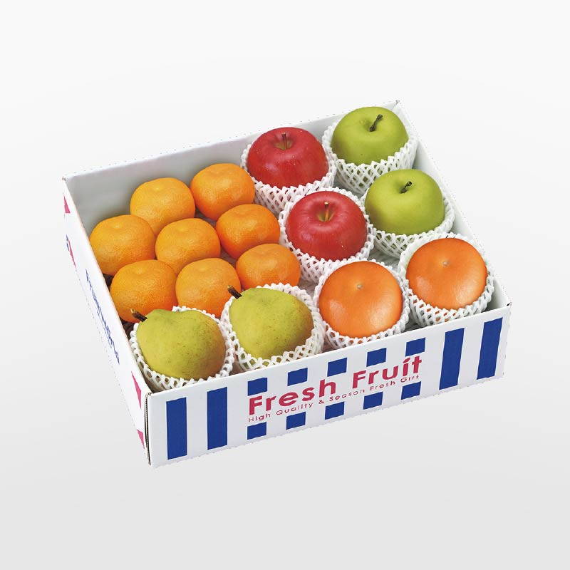 | 産 地 | サンふじ・王林:長野県又は青森県産、ラフランス2玉:山形県又は青森県産、紅まどんな:愛媛県産又はハウス不知火(熊本県又は鹿児島県又は長崎県又は佐賀県産)、三ヶ日みかん:静岡県産 |