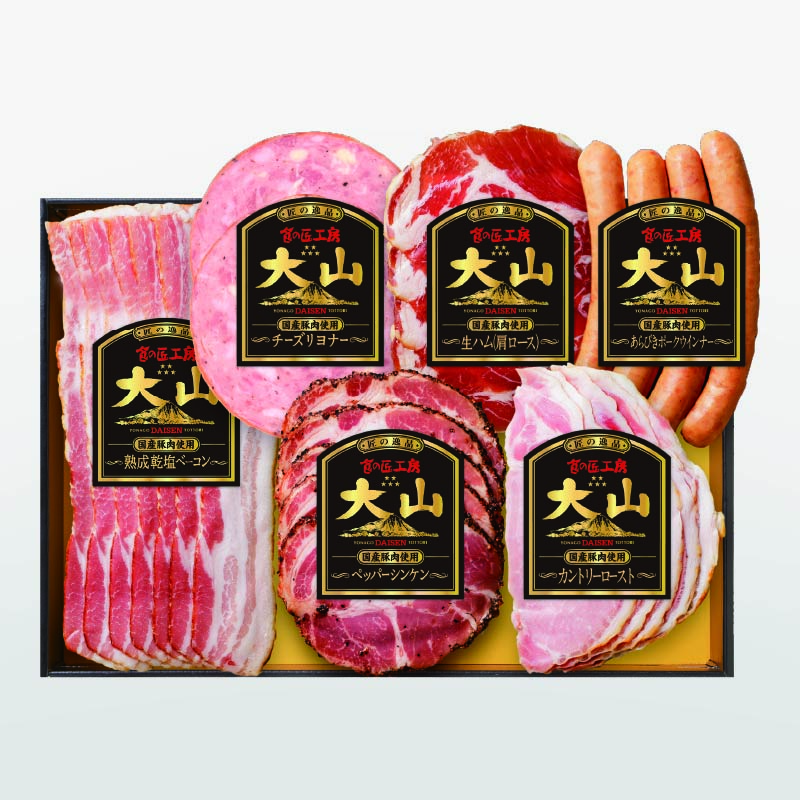 国産原料肉を用いた、こだわりの逸品。大山ハム自慢の6種セットです。