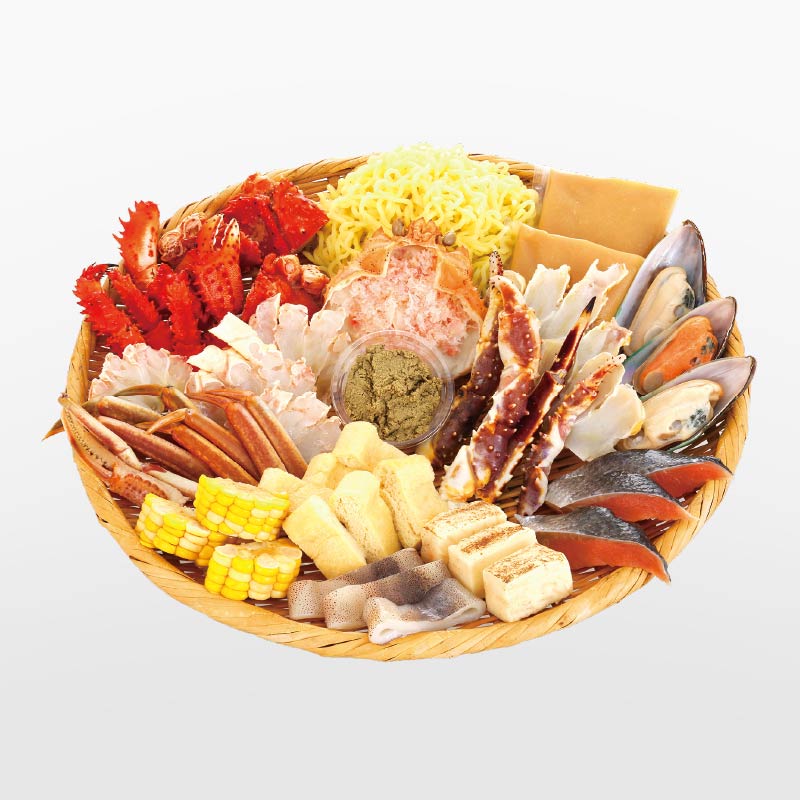 | 内 容 | たらばがに・ずわいがに・花咲がに各180g、焼き豆腐・秋鮭・松いか・パーナ貝・コーン×各3、油揚げ×6、かに甲羅すり身85g、ラーメン200g、かにみそ20g、たれ×2 |