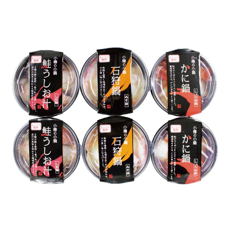 | 内 容 | かに鍋・石狩鍋・鮭うしお汁 各280g×2 |