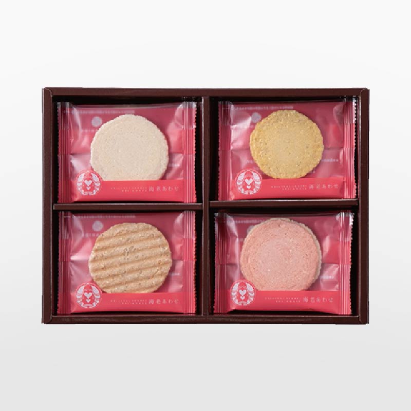 | 内 容 | えびチーズサンド・緑色のえびせんべい・紅色のえびせんべい・えび小笹・のりえびせん・しょう油&山葵&椎茸・橙色のえびせんべい×各2、えび柚子胡椒・ふた焼ごま×各3 |